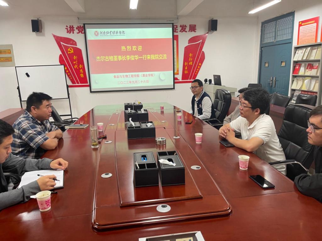2023年9月26日,杰尔古格智能科技有限公司董事长李俊华一行4人到我院就后续双方深入合作事宜进行磋商,食品与生物工程学院院长邹建、科研办主任张煌以及张振辉博士参加了洽谈会,洽谈会由邹院长主持。