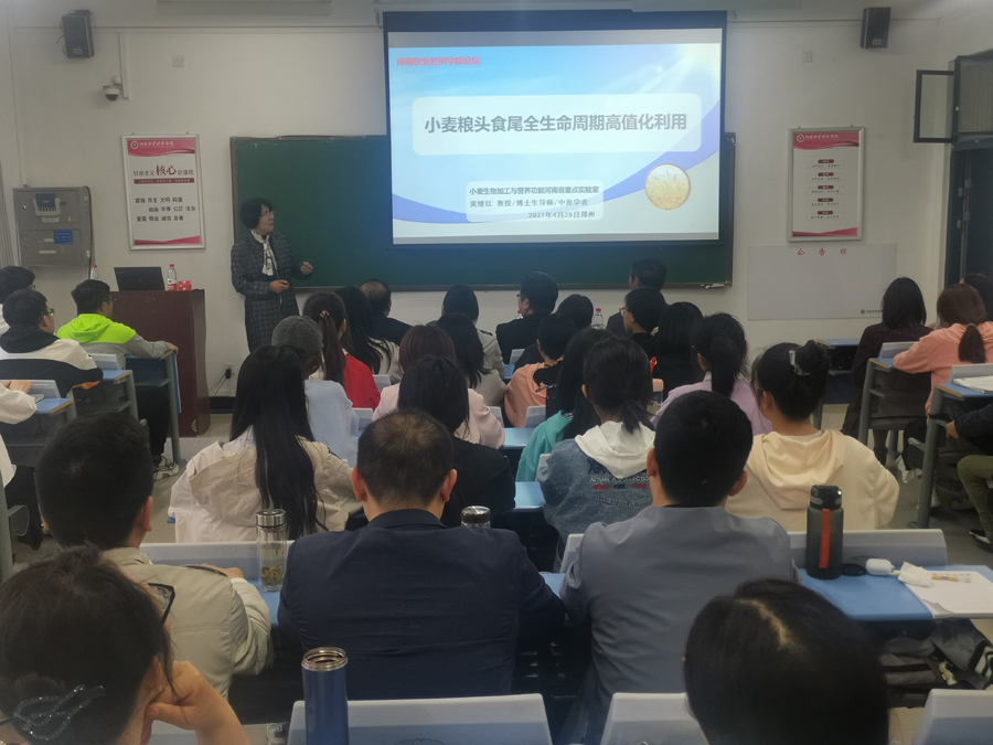 为切实提高我院学科建设与科技研发水平,加强与知名高校的学术交流,促进学院全方位发展。2021年04月28日下午,学院Food-Bio Seminar第二期——大咖讲坛系列活动第七场如期在2号教学楼A402举行,特邀河南工业大学博士生导师、中原学者黄继红教授作“小麦粮头食尾全生命周期高值化利用”的专题报告。报告会由副校长张卫宪主持,食品与生物工程学院党委书记赵安勇、副院长郝修振出席了报告会,学院各科研团队成员和部分学生聆听了报告。