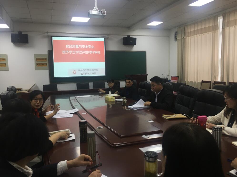 2018年4月11日下午,在会议室C309召开了食品质量与安全专业授予学士学位材料审核会。院长王永芬,书记赵安勇,副院长邹建,院内审核专家李凤玲、舒友琴、马丽卿,教研室主任岳晓禹及材料组全体成员参加了本次审核会。会议由院长王永芬主持。