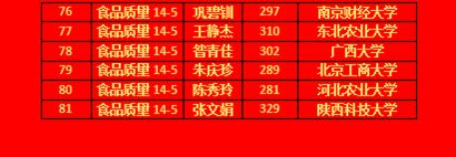 近日,食品与生物工程学院学生考研捷报频传。今年,食品与生物工程学院学院本科毕业生共计368人,共有200人参加全国硕士研究生考试,报考率为57.34%,其中96人通过国家最低控制分数线,过线率为48.0%。截至目前,81人顺利通过研究生复试,录取率达到40.5%,占全部毕业生人数的22.01%。考研上线人数、录取人数、考取院校层次等均取得新突破。