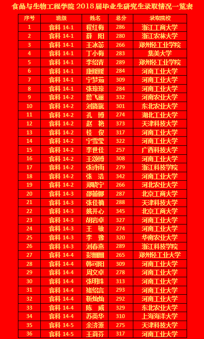 食品与生物工程学院学院历来十分重视学生人才培养工作,严抓人才培养各个环节,坚持将本科生考研工作作为教风学风建设的重要抓手之一。下一步学院将继续做好考研复试成功学生后续管理、考研失利学生心态调整、2019届本科生考研经验交流等工作,为营造优良院风学风而继续努力。