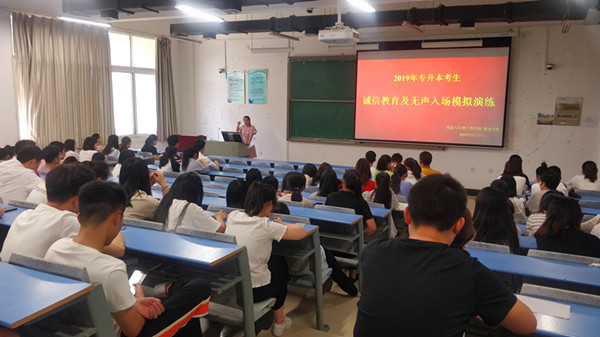 为进一步加强专升本考生的诚信教育、严肃考试纪律,按照郑招办、校招就处的相关要求,5月27日12点,食品与生物工程学院 · 酒业学院在龙子湖校区合201、202开展2019年专升本考生诚信教育及“无声入场”模拟演练,由窦孝宇、陈梦莹老师负责组织本次演练,并将情况及时上报。
