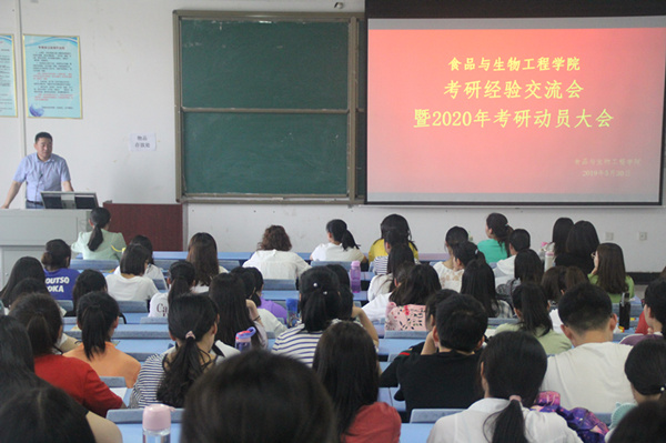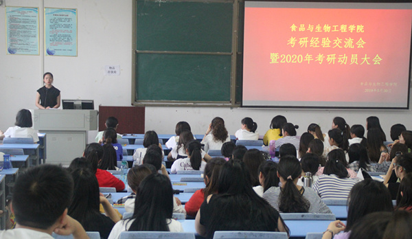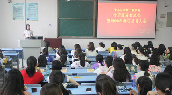 本次大会学院还邀请了被江南大学、华中农业大学等知名高校录取的4名优秀学生代表分享考研经验,同学们结合自身经历,从复习计划制定、资料的选择、报考志愿选择、心态调整等方面与学弟学妹进行了交流,现场气氛严肃活泼。