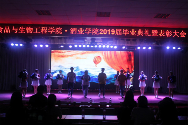 食品与生物工程学院·酒业学院2019届毕业生欢送会于6月11日晚在大学生活动中心隆重举行。党总支书记赵安勇、院长王永芬、正处级组织员杨国政、党总支副书记杨军、副院长潘春梅、副院长郝修振、副院长邹建、各毕业班班主任、团总支辅导员老师及2019届全体毕业生一起观看了本次晚会。
