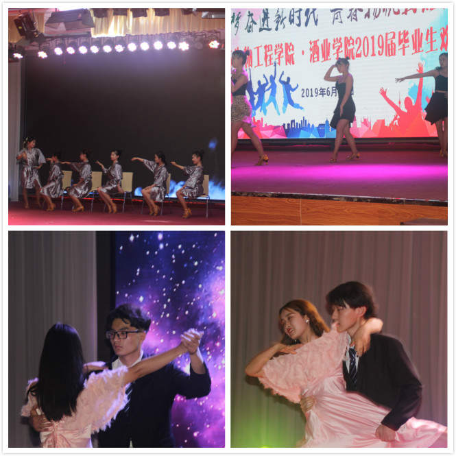 欢送会在歌舞《我们都是追梦人》中拉开序幕,活力四射的健美操舞者为晚会的进行营造了热烈的氛围;拉丁舞《almost lover》与华尔兹《红粉佳人》的完美融合,彰显了食生学子的青春魅力和精神风貌,毕业生倾情演唱的民谣串烧旋律悠扬,韵味悠长,饱含着对母校的眷恋;逗趣中带有一丝伤感的小品《我们毕业了》,展现了母校南门落成、图书馆启用、宿舍装上空调等日新月异的可喜变化,也表达了青春追梦人对师长的感恩之情及对未来的踌躇满志。李欣老师参演其中,鼓励毕业生们到基层、到企业、到西部、到祖国最需要的地方去,发挥自己的光和热,用专业所长,造福社会;国风歌曲与汉服走秀完美融合的节目——《华夏有衣之兰亭序》,伴着古筝和琵琶的演奏,体现了新时代大学生对中国传统文化的传承与弘扬,华夏儿女的文化自信贯穿始终;曾荣获东南地区亚军的街舞《BonBonChocolate》,释放了热情奔放的青春气息,舞者借舞蹈张扬青春个性,表达自我,将晚会的气氛推向了高潮;歌曲《不说再见》缓缓诉说了离别之际的不舍,毕业有期,梦想无尽;由十余位毕业生代表表演的集体舞《人猿泰山》通俗诙谐,燃爆全场,晚会师生的欢笑中落下帷幕,所有的不舍、感激、祝福、憧憬和期盼都被定格在照相机快门声响起的瞬间。