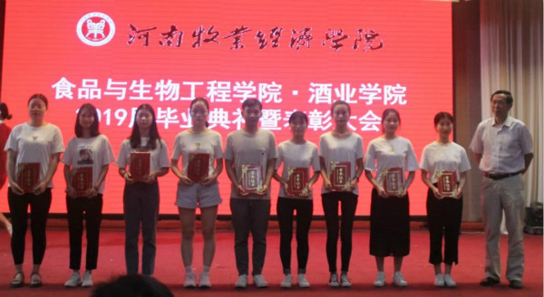 6月11日晚,食品与生物工程学院•酒业学院2019届毕业典礼暨表彰大会在大学生活动中心隆重举行。本次典礼由食品与生物工程学院•酒业学院正科级组织员李欣主持,出席典礼的领导老师有党总支书记赵安勇、院长王永芬、正处级组织员杨国政、党总支副书记杨军、副院长潘春梅、郝修振、邹建、各毕业班班主任、团总支辅导员及2019届全体毕业生。