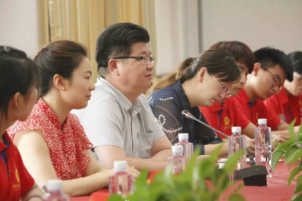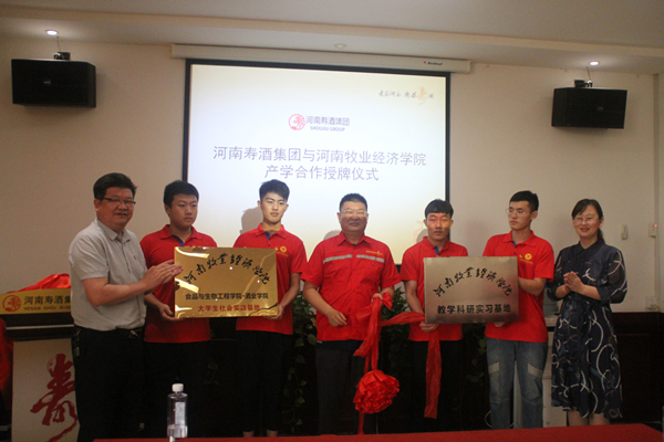 当天中午,食品与生物工程学院与河南寿酒集团举行了教学科研实习基地和大学生社会实践基地的揭牌仪式,参加仪式的有党总支书记赵安勇、副院长潘春梅、正科级组织员李欣、河南寿酒集团总经理李峰、副总经理牛广杰、以及集团员工和社会实践服务队队员。赵安勇书记在会议中讲到,今天是党九十八岁的生日,希望暑期实践服务队的队员们牢牢记住今日,在社会实践服务的过程中积极实践、把握学习的机会。赵安勇书记强调学院在豫酒振兴工作中起到的作用:一是人才培养的高质量发展,二是科技研究和酿造技术的提高,三是豫酒文化的传承创新,旨在建设豫酒人才培养基地与技术高地,为豫酒振兴提供人才与技术支撑。赵书记表示,我们要共同展望酿酒行业的美好未来,运用现代技术对酒业发展进行不断完善,为豫酒未来的发展携手共进。