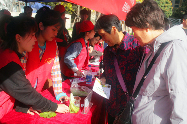 活动伊始,学生第一党支部书记李欣带领支部党员代表在党旗下庄严的宣誓,重温入党誓词,开展党员思想意识教育。高凤阳老师向现场党员讲解了黄文秀同志的先进事迹,号召党员们向黄文秀同志学习,积极奉献社会。学习活动结束后,党员志愿者们开展了以“食品健康,安享生活”为主题的“互联网+食品安全进社区”实践服务活动。他们发挥专业特长,为居民们现场讲解蔬菜农残检测技巧,分享乳制品、鸡蛋、蜂蜜、白酒、红酒等优劣识别的要点,宣传普及食品安全知识。恰逢周末,党员志愿者们还通过趣味竞答活动,在小朋友中间开展食品安全知识竞答活动,以轻松愉快的方式普及食品安全知识。活动还得到了龙子湖社区食药监所的支持,受到了社区居民的一致好评。