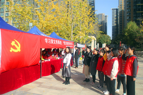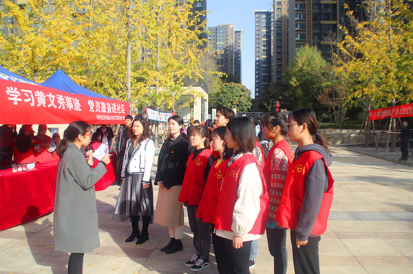 为进一步推进“不忘初心、牢记使命”主题教育扎实开展,强化党员服务意识,11月10日,食品与生物工程学院(酒业学院)正科级组织员、学生第一党支部书记李欣老师、支部委员高凤阳老师、张馨亓老师带领学生党员,联合龙子湖街道办食药监所走进五月花城举办“学习黄文秀事迹,党员服务进社区”主题党日活动。