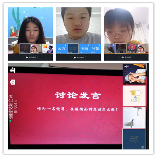 就“作为一名党员,在疫情面前应该怎么做”问题上,各支部党员展开讨论。梁昊辉指出,医务人员们在大灾当前不退缩,越是艰难越向前。他们是新时代最美的追光者,更是我们心中最可敬的时代英雄。“苟利国家生死以,岂因祸福避趋之”,抗击肺炎使中华民族又一次彰显出伟大的民族精神,只要我们团结一心,终能战胜疫情,打赢这场硬仗;李莎提出,作为学生党员,要从自身做起,时刻关注疫情最新动态、利用知识技能科普常识,带动身边群众配合防疫工作,坚持做到不造谣、不信谣、不传谣,树立好党员旗帜;庄文静同志表示,牢记河南省教育厅厅长郑邦山同志教诲,将此次磨难当做历练,在逆境中锻铸共产党员的初心和使命。