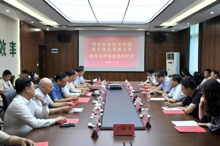 7月20日,校长罗士喜带队到宝丰酒业有限公司和贾湖酒业有限公司进行考察调研,并与宝丰酒业有限公司签订技术合作协议,校长办公室主任贾江、社会服务处处长胡迎利、食品与生物工程学院(酒业学院)院长潘春梅、酿酒工程教研室主任赵志军、工商管理学院博士尚光辉陪同调研。