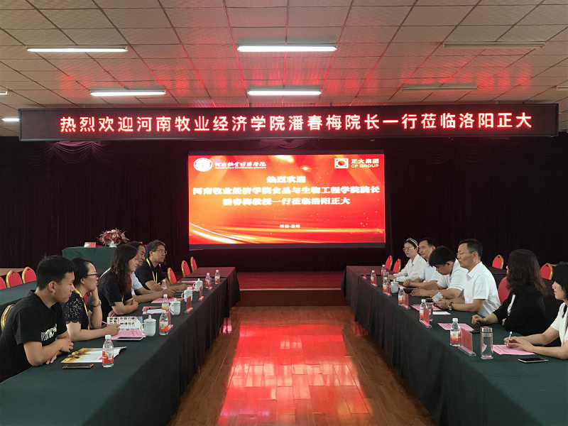 正大集团河南区食品事业总裁王学斌等公司领导热情接待了潘春梅院长一行,双方在公司会议室召开了座谈会。会上,潘春梅院长介绍了我校的办学历史、办学特色、专业建设、师资队伍、校企合作基地等情况,希望双方发挥各自优势,进一步加强合作。洛阳正大食品有限公司总裁王学斌介绍了正大集团的整体发展情况、企业发展历史、企业理念等相关情况。双方围绕校企合作、人才发展及培养模式、课题研究、实习基地建设等合作细节交流想法,深入探讨校企合作的具体事项,对校企合作项目的主要内容达成了初步意向。会后,潘院长一行参观了洛阳正大食品有限公司的屠宰生产线和肉制品加工生产线。