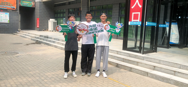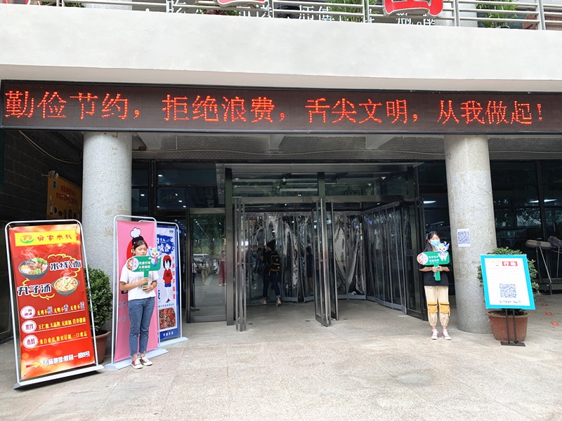 我院志愿者分别在醒苑餐厅和隨园餐厅进口手持豫小团、牧小经Logo的手持劝导牌,让进餐厅用餐的学生耳目一新,同时安排志愿者手持劝导牌在餐厅内进行温馨的劝导。活动一经推出,就得到了师生的热烈响应,贯彻厉行节约、反对铺张浪费的倡导深入人心。“2020,拒绝‘剩’宴!”“吃多吃少,光盘正好!”“舞出我们自己的光盘style “光盘行动的口号以多种形式在同学们之间传开,志愿者用实际行动传播正能量,为光盘行动助力,让更多的人加入这一有意义的活动之中。