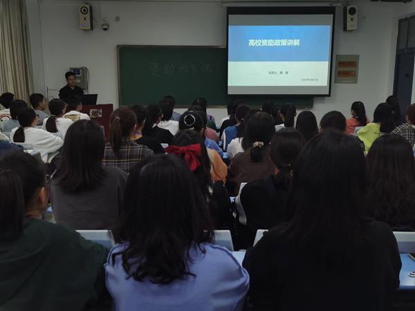 资助解读会上,黄老师主要围绕国家奖学金,国家助学金,绿色通道,勤工助学,生源地贷款和高校贷款等资助政策向2020届新生们进行解读,接着讲解了贫困生认定的流程、条件等问题,并希望有资助的同学做好相关材料,按自身真实条件如实填写好相关信息并及时上报。同时又向学生们提出要以正确的思想观念对待奖助学金的评选,黄老师希望同学们要热爱祖国,努力学习,自强不息的良好作风投入到大学的学习和生活中去。