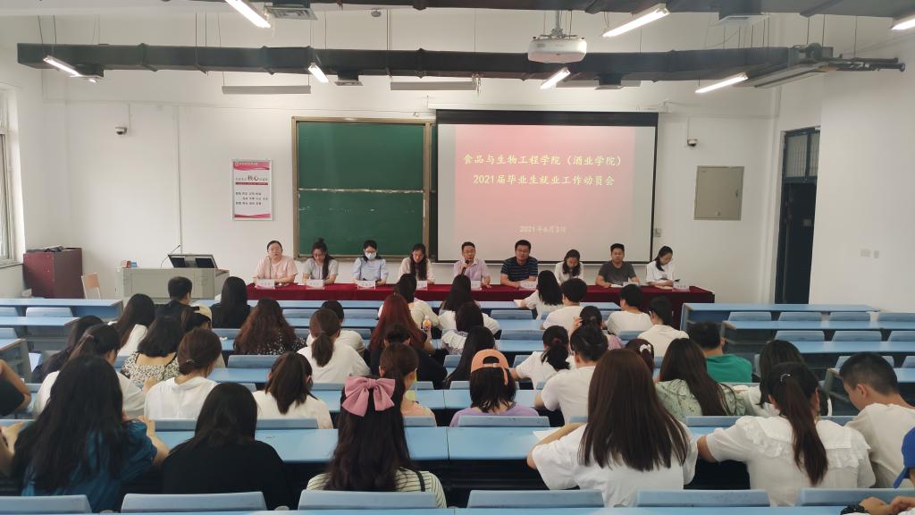 为做好2021届毕业生思想教育及就业服务工作, 6月3日,食品与生物工程学院(酒业学院)在龙子湖校区1号教学楼合501召开2021届毕业生就业工作动员会。院党委副书记赵贺然、团委书记马永生、全体毕业班辅导员及各毕业班党员及学生干部代表参会,会议由马永生主持。