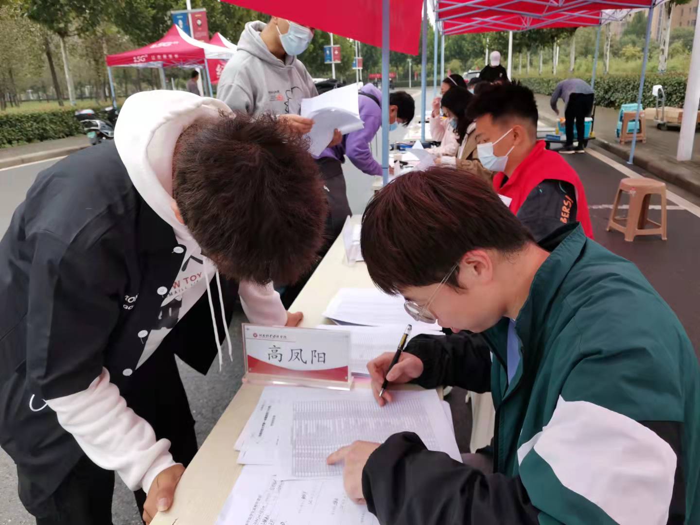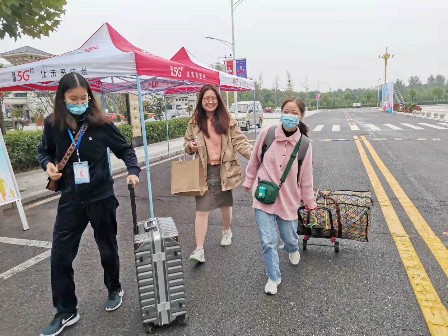 学院党委针对返校学生实际情况做了周密细致的安排部署,全院上下各负其责,互相配合,以带有“温度”的“硬核”防控措施迎接学子归来,确保学生安心、家长省心、社会放心。学生工作队伍一早就来到了接待现场,布置安排复学登记、三单一书收缴、核酸检测结果核实、路线指引等工作,确保复学流程顺畅。学生入校后按照学院统一安排,各项程序有条不紊地进行,在信息登记的空隙,辅导员老师们还与返校学生耐心沟通,询问学生返校情况,叮嘱学生要做好个人防护。我院师生不辞辛苦,坚守岗位,在办理好复学手续的同时,还积极帮助同学们搬运行李。期间,校党委副书记李俊杰、副校长杨志清等领导到我院学生报到现场指导工作,详细了解学院返校复学工作情况,指导报到现场各项工作。