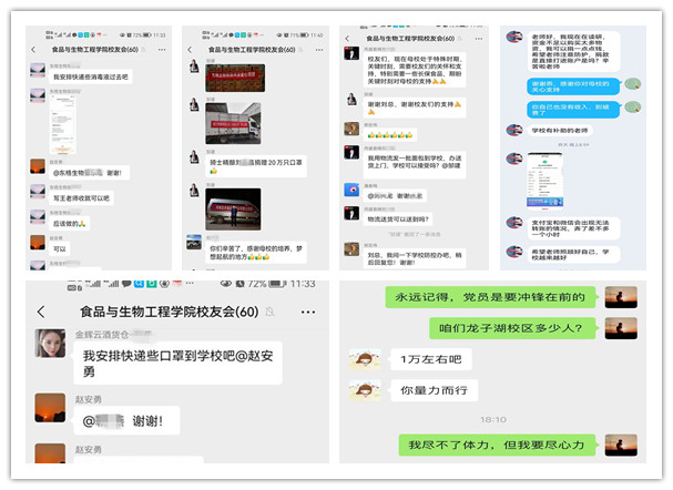 学院的抗疫工作,也牵动着很多学院合作企业和毕业校友的心。他们通过各种方式联系学院,对学院和母校的抗疫工作十分关切,纷纷表示要为学院的抗疫工作贡献自己的力量。学院先后收到双汇集团、志农食品有限公司、禾胜合食品有限公司、白象食品股份有限公司、嗨吃家食品科技有限公司、骑士精良啤酒公司等省内知名企业援助捐赠的生活和抗疫物资。很多去年刚刚毕业的学生,也情系母校,为母校抗疫工作提供力所能及的帮助和支持。