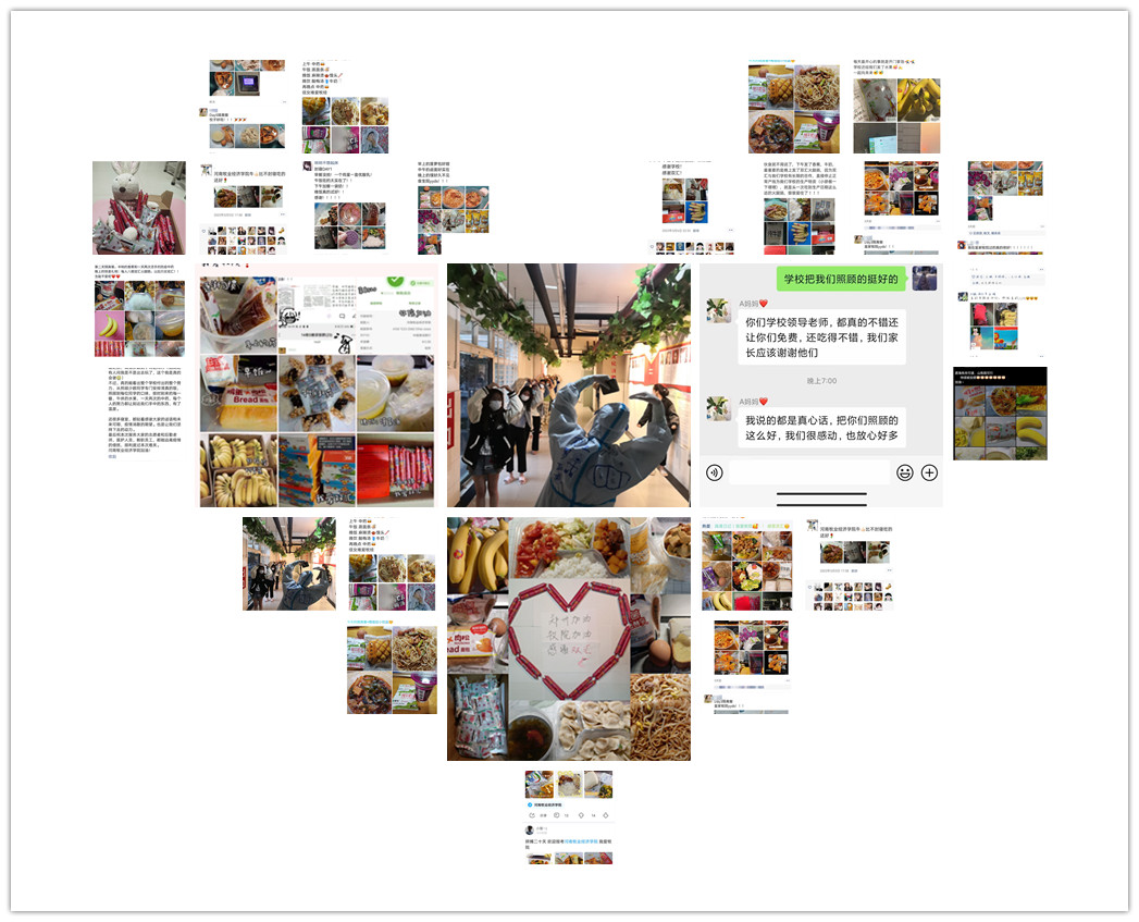 在抗击疫情的过程中,学院辅导员老师、志愿者老师坚守初心,无怨无悔,甘于奉献。这些场景被学生们看在眼里,记在心间,他们用不同的方式表达了对学校、学院无微不至关怀的感激之情,大家纷纷表示一定会牢记学校在困难时期带给同学们的温暖,让大家安心,同学们也一定会以灾难为教材,督促自己不断进步,刻苦学习,锤炼自我,以实际行动践行青年使命。学院的各项抗疫工作也得到了学生家长的认可,他们表示支持和理解学校的防控政策,感谢学校对孩子的关心和照顾。疫情无情,校园有爱,每个人都是这场战斗的参与者,师生同心,抗疫必胜。