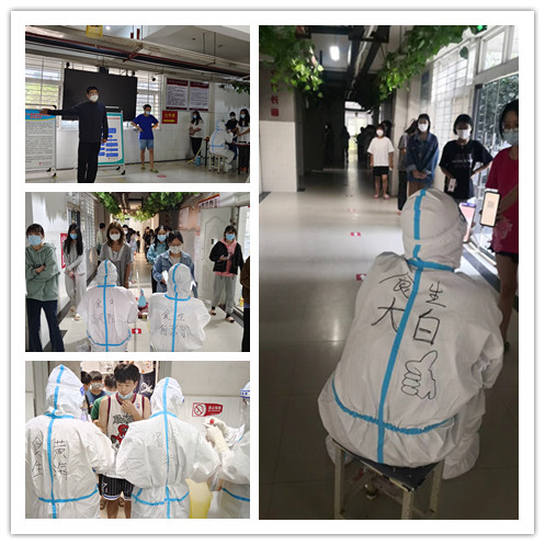 老师们还化身“大白”参与到核酸检测工作中,他们维持排队秩序,进行信息登记,耐心地为每一位同学做好服务。对防疫管控宿舍,辅导员老师们与医务人员一起,上门进行检测,每天爬一遍楼,一间一间宿舍敲门登记,还不忘了嘱咐同学们开窗通风,做好防护,一趟下来,常常是汗流浃背。