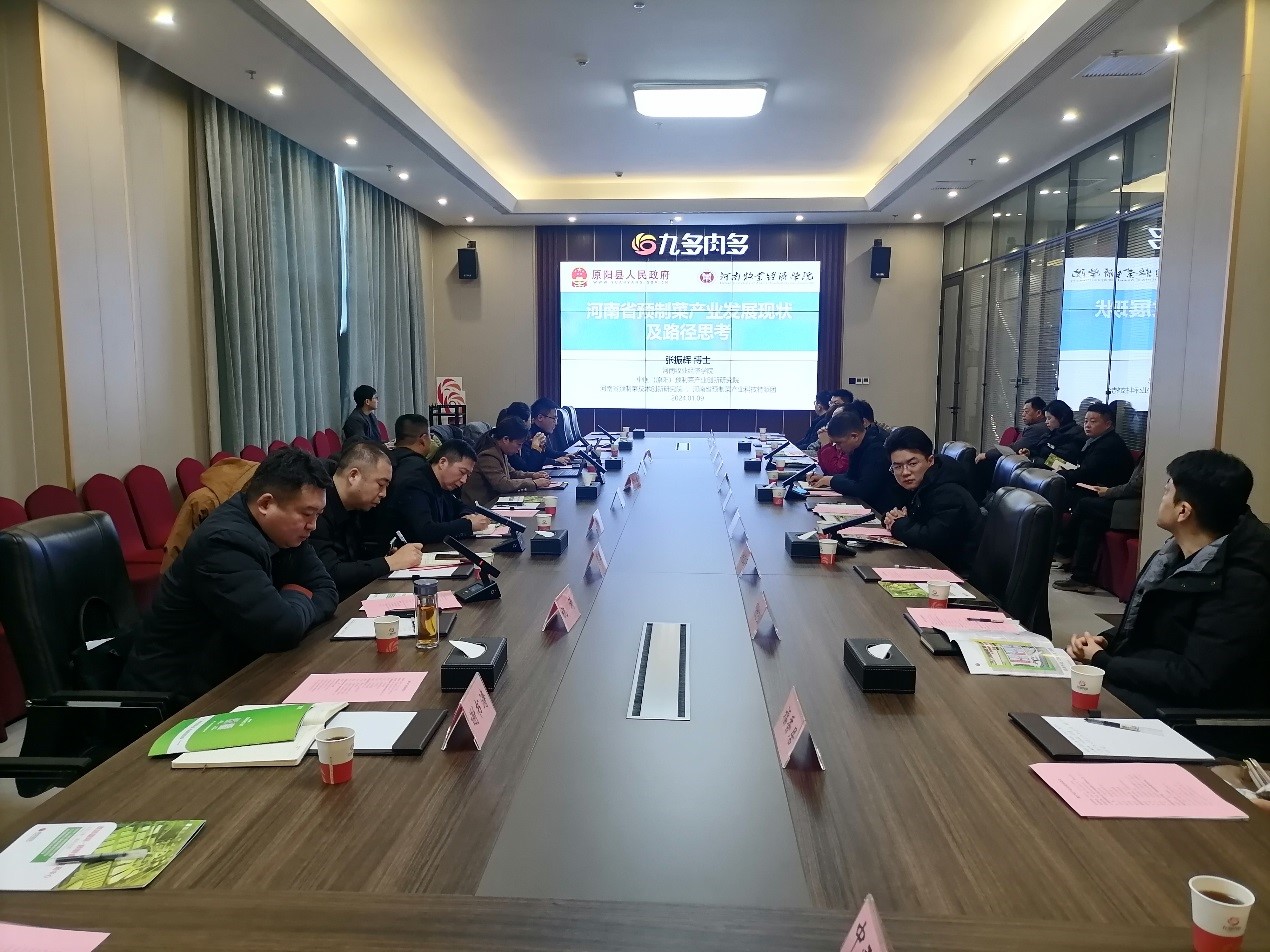 2024年1月9日,上海西郊国际农产品交易有限公司(以下简称“西郊国际”)赴原阳县考察交流,谋求深度合作。原阳县政府组织本地预制菜领域头部企业与西郊国际开展座谈会,我院预制菜团队成员张振辉博士,应原阳县邀请参加了本次座谈会,并做了《河南省预制菜产业发展现状及路径思考》的报告。