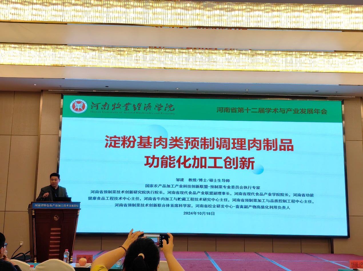 我院邹建教授应邀做了题为“淀粉基肉类预制调理肉制品功能化加工创新”的主旨报告,提出在淀粉基肉类预制调理产品中存在的问题,针对现存问题构建了功能化加工技术体系,并实现该体系在淀粉基肉类预制调理食品中的产业化应用。