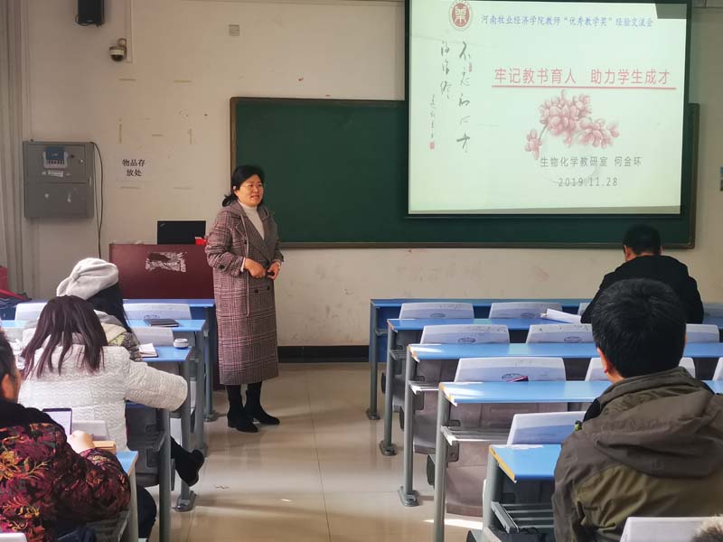 教师强,则教育强,教育强,则国强。教师是学生成长、成才的引路人,为深入落实教育初心、育人使命,增强广大教师教书育人的责任感与使命感,结合我校“不忘初心、牢记使命”主题教育,我院于11月28日在2号教学楼A421举办了“2019年度教师教学奖”获得者何金环教授先进事迹主题报告会,报告会由副院长邹建主持,全体专业教师参加此次主题报告会。