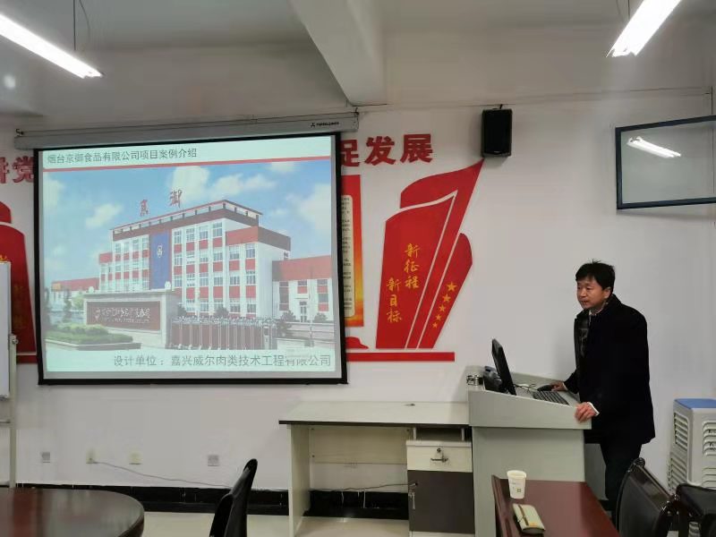李满林总经理以多年肉制品加工厂设计的从业经验为基础,从多年来从事过的国内外大型肉制品工厂设计的实例出发,进行了从理论到实际应用转化的“落地式”讲解。讲解内容包含了工厂的总体设计、车间布局、设备选型、以及其它环节的细节把控,并与参加培训的老师进行了多个应用实例的讲解与互动交流,全体教师受益匪浅,反响热烈。会后部分老师与李满林总经理就工程设计中可能遇到的问题与难点进行了深入的探讨,整体收获颇丰。
