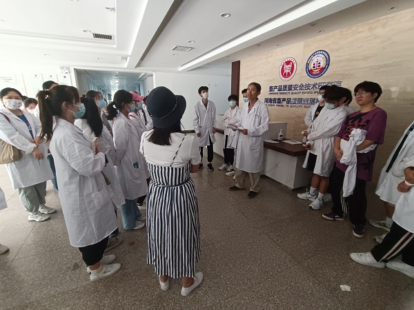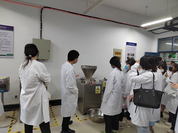 由于受疫情影响,本应在校外开展的专业认知实习难以按照原计划进行。面对此种情况,在学院领导的大力支持下,食品科学与工程教研室不断思考应对策略,努力寻求多方面资源,力求活动形式和内容上的创新。首先三位带队老师分别带班参观了本专业的肉品、速冻、焙烤、乳品、食品工程原理等实验室,让同学们对食品专业课堂实验、仪器设备有了初步了解;接着分班参观畜产品质量安全技术研究院,受到了研究院副院长岳晓禹教授的热情接待,他简明扼要地介绍了研究院的情况,并强调了质检的重要性,随后同学们参观了研究院实验室,岳院长耐心地向同学们介绍了研究院内部的专业设备,并解答了同学们提出的问题。