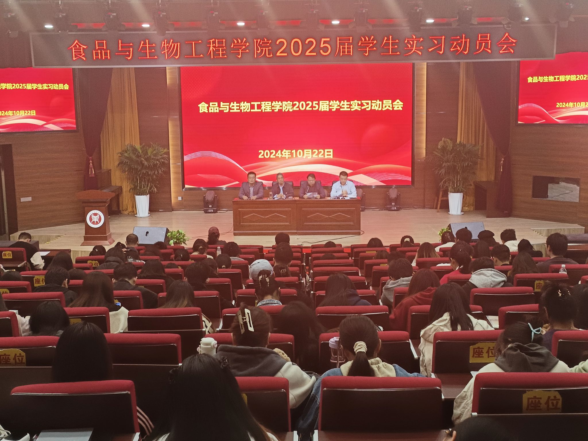 为更好的开展毕业生实习工作,10月22日下午在1号教学楼合100报告厅召开2025届学生实习动员会,院党委副书记任文良、副院长郑鸣、教学办主任刘延波、团委书记马永生、各专业教研室主任、副主任及全院25届毕业生参加本次会议。会议由教学办主任刘延波主持。