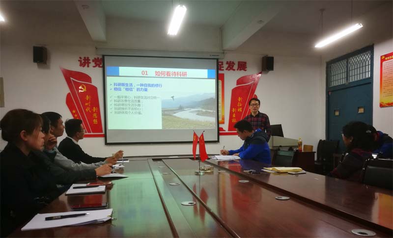 报告开始前,副院长邹建对博士生导师许文涛的到来表示热烈欢迎,并详细介绍了我院的学科方向、专业设置及科学研究现状等基本情况。研讨会上,博士生导师许文涛首先结合自己学术领域与科研经历,介绍了科研方向选择凝练,分享了申报国家自然基金的经验,就科研选题、基金撰写、项目申报、论文写作等多个方面与在座老师进行了深入的交流,强调科研需要不断坚持,,要在坚持中积累科研基础、完善科研方向、明确个人在团队中的作用,同时对海量阅读在科研突破中的作用进行了详细分析。同时勉励与会教师,一定要以平常心对待科研,科研既是生活,也是一种自我修行。之后,许老师结合自己的研究领域及科研成果,作了题为“功能核酸生物传感器”,从功能核酸归一化快检理论的提出、功能核酸定义、核酸扩增新技术、生物传感器装置、功能核酸信号转化模型、分子标识库的搭建、功能核酸在重金属检测中的创新等几个方面进出进行了阐述,以自己的科研成果和设计思路为例,详细介绍了功能核酸的发展历史、以功能核酸为核心的生物传感器搭建及功能核酸在食品安全检测上的应用。整个报告深入浅出、生动形象,通过精美的图片展示使深奥的理论变得浅显易懂,精巧的实验设计博得了与会教师的阵阵赞叹声,拓展了学术视野与科研思路,激发了科研热情。