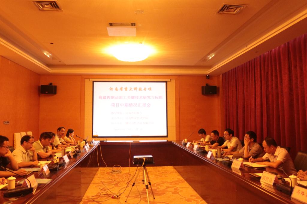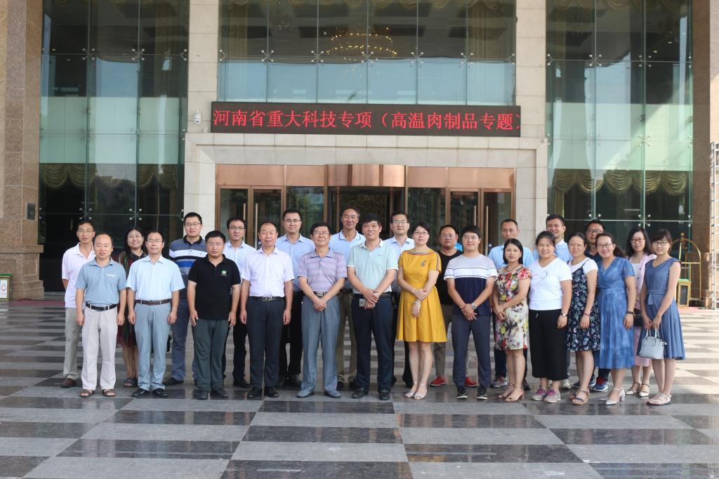 由我校杨宝进教授主持的河南省重大科技专项(高温肉制品专题-161100110700)于2016年7月获河南省科技厅项目立项,经费550万。为确保该项目的顺利实施和预期目标的实现,提升科技经费使用绩效,进一步督促各子课题承担单位按进度完成,由我校主办、漯河双汇协办的“河南省重大科技专项(高温肉制品专题)项目中期汇报会”于2018年8月28日在漯河迎宾馆召开。我校该项目组全体成员、各子课题参加单位项目组人员(河南农大、河南科大、河南科技学院、许昌学院、漯河双汇、焦作伊赛、南阳科尔沁等)及相关专家参加了本次汇报会。