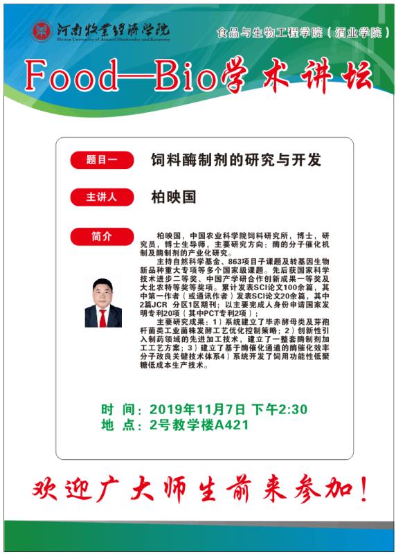 食品与生物工程学院(酒业学院)Food-Bio学术讲坛开讲