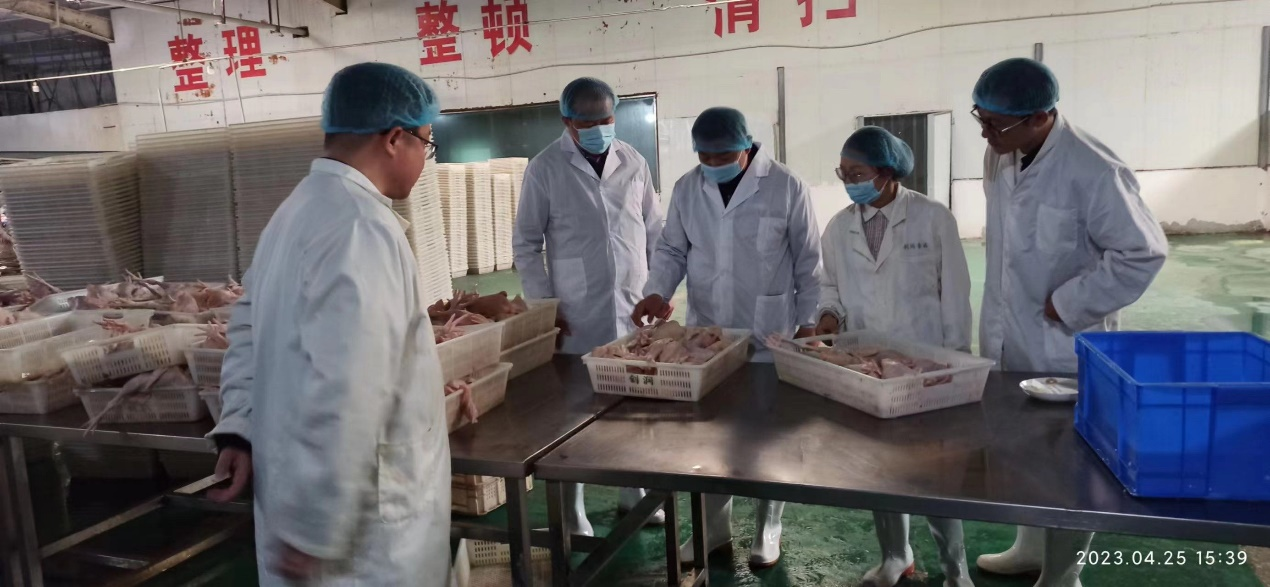 座谈会上,赵旭昌董事长首先对我院预制菜团队所取得的成绩给予了高度评价,并介绍了德信食品的发展现状。邹教授简述了我院近几年在服务企业方面取得的成绩,并对赵董事长提出的在预制菜发展方向、产品研发以及生产中存在的问题给予建议和解答。会后,团队一行在赵董事长陪同下分别考察了德信公司的鸡米花生产车间、屠宰车间以及研发平台。