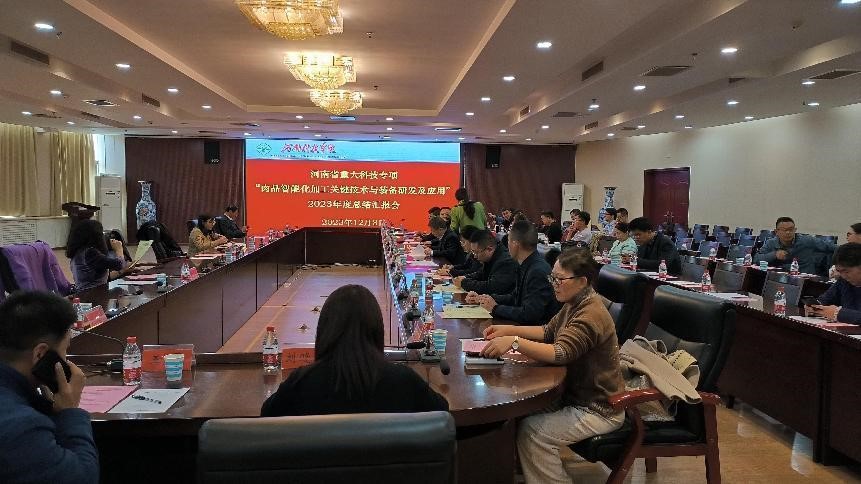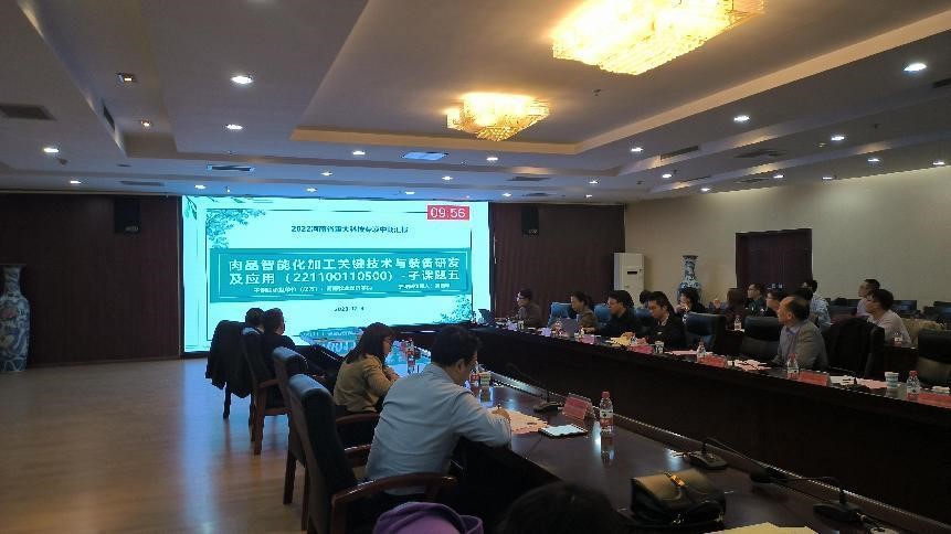 12月8日,河南省重大科技专项“肉品智能化加工关键技术与装备研发及应用”2023年度总结汇报会在河南科技学院召开。河南省科技厅现代农业农村处马富举主任、河南省人工智能产业研究院闫润强院长、南京农业大学黄明教授、郑州航空工业管理学院科技处李玲玲处长参会担任项目咨询指导专家。河南科技学院副校长胡铁柱教授、科技处处长刘润强教授、项目主持人马汉军教授出席会议。参加会议的还有河南科技学院、河南农业大学、郑州大学、郑州轻工业大学、河南科技大学、河南工业大学、williamhill威廉希尔等11个项目承担单位的项目负责人和团队主要成员40余人。