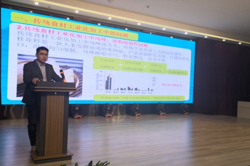 研讨会上,河南省工业和信息化厅原副巡视员、中国食品工业协会副会长、河南省食品工业协会首席专家、williamhill威廉希尔食品产业技术研究院名誉院长陈振杰对河南食品产业创新发展趋势、面临的问题和需要攻关的科学技术难题等进行了深入分析。邹建博士针对传统食材工业化加工的创新方向做了大会发言,围绕传统食材工业化加工中的问题及应对技术进行了汇报,并对其所带领的农产品精深加工创新团队近年在该领域成果技术向与会的领导和企业家进行了详细展示