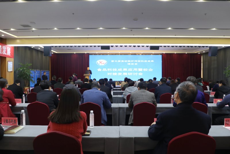 2020年10月22日,第三届高校院所河南科技成果博览会食品科技成果应用暨校企对接发展研讨会在原阳县举行,省内外高校食品产业、行业研究专家学者、行业精英、领军企业代表汇聚一堂,共研共商食品加工产业的成长与发展。我校张卫宪副校长、食品产业技术研究院名誉院长陈振杰、食品与生物工程学院党委书记赵安勇、副院长邹建参加了此次研讨会。