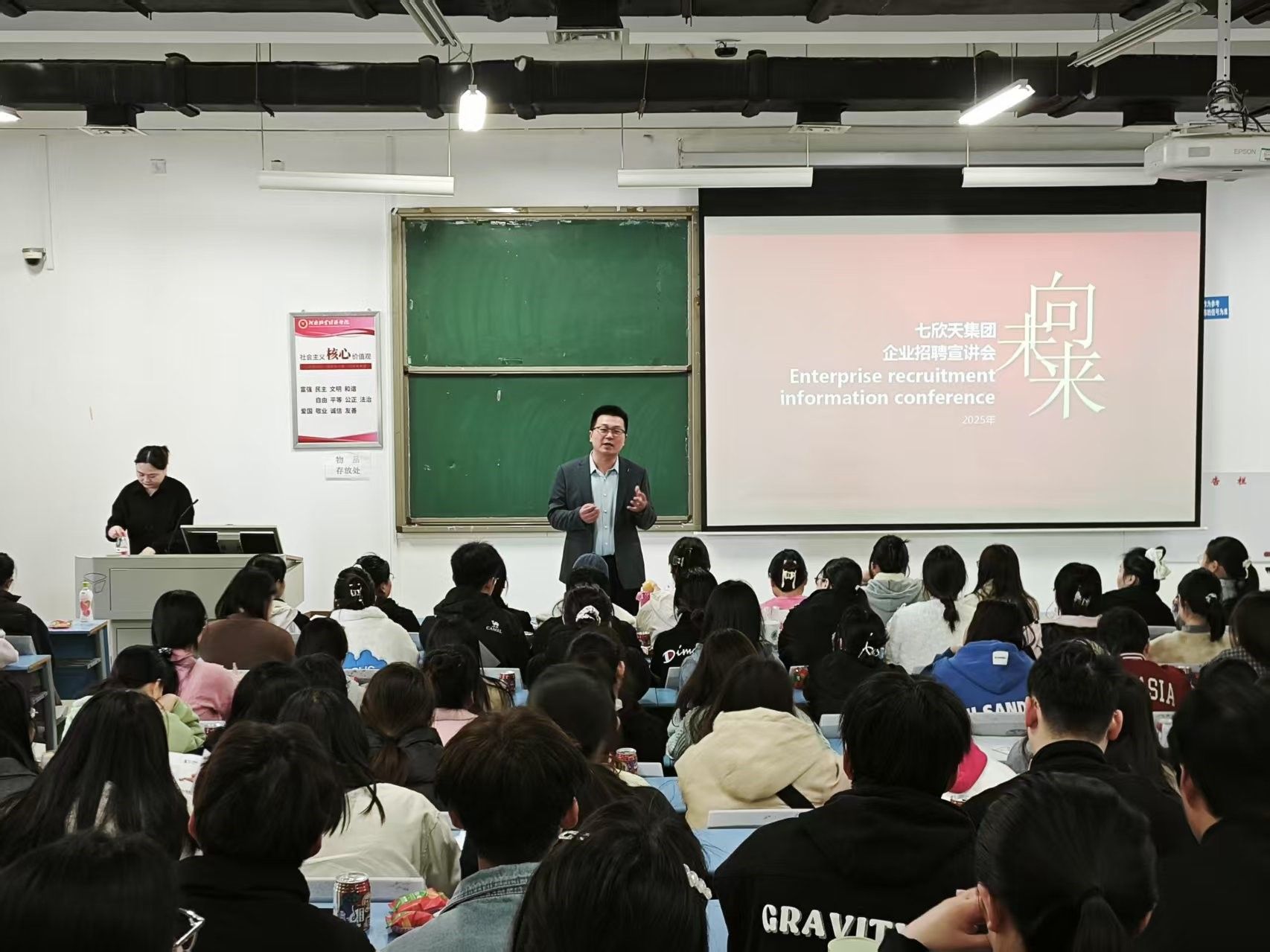 为更好地帮助我院学生明确未来就业方向,我院将重点面向毕业生群体,积极提供就业平台,于3月19日上午9:30——下午17:00,食品与生物工程学院举办2025届春季宣讲会专场活动。此次活动由七家企业分别举办宣讲会,它们分别为杭州外婆宴酒店管理有限公司、江苏七欣天餐饮管理连锁有限公司、河南禾胜合食品有限公司、河南金辉酒业有限公司、中粮万威客食品有限公司、南京大惠企业发展有限公司、漯河市卫龙商贸有限公司。